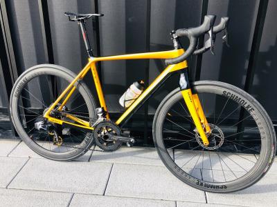 Sram XX Schaltung. Specialized Brain Federgabel. Tune Kurbel. Tune Princess Naben. S-Works Sattel. BFO Bremsen. Enve Carbon Lenker. Gewicht: 8,6Kg