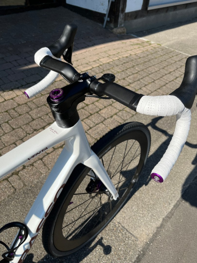 Shimano Dura Ace Schaltung. Tune Kurbel. Tune Vorbau. Tune Sattel. Tune Schwarzbrenner Felgen. Tune Schnellspanner. Specialized Carbon Aerofly Lenker. Nokkon Carbon&Alu. Gewicht : 6,8Kg