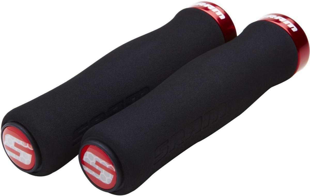 SRAM, Griffe, Contour Foam, Schraubgriffe, schwarz, Länge: 129mm, mit roter Klemmschelle und Lenkerstopfen