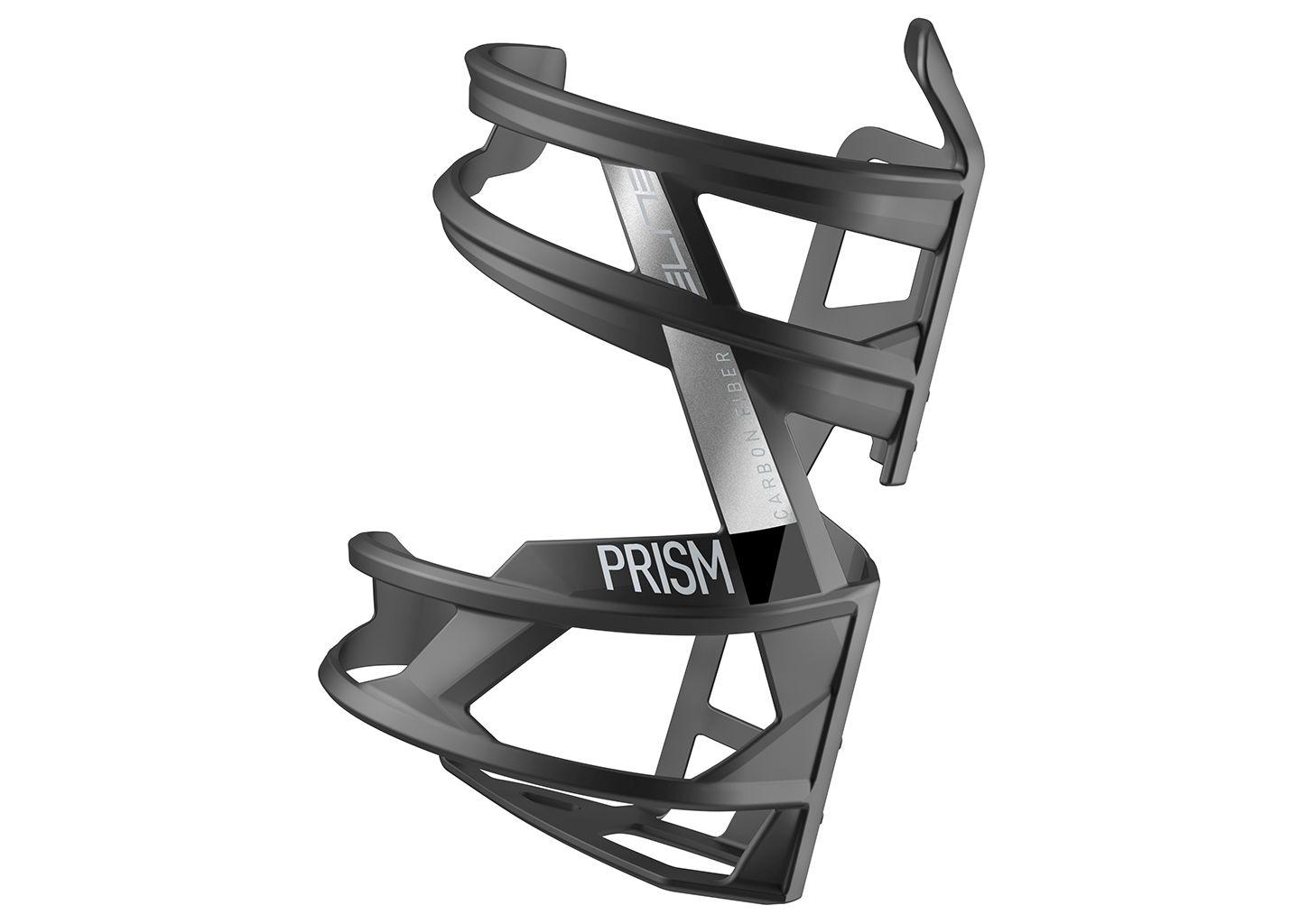 Elite, Flaschenhalter (Sidecage), PRISM CARBON LEFT, matt schwarz/schwarze Grafik (glänzend), Einfügungsrichtung links, Ø 74mm, Höhe 144mm, Carbon, Gewicht ca. 29g